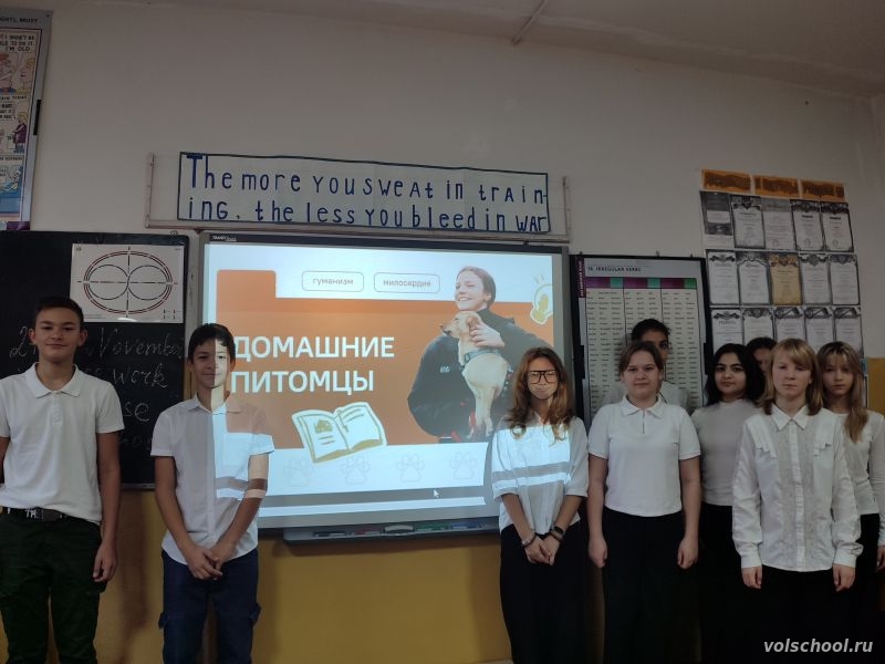 Новая учебная неделя в нашей школе началась с торжественного подъёма Государственного флага Российской Федерации и исполнения гимна страны. Максим Юришинец, занявший третье место в районном фестивале-конкурсе казачьей песни «Распахнись, душа казачья!», посвящённом 80-летию Победы в Великой Отечественной войне, был награждён грамотой. На общешкольной линейке выступила президент школы Варвара Семененко, которая вручила жетоны ученикам за хорошую успеваемость. Награды получили Матвей Мотин, Александра Семененко, Лидия Букурова, Илья Иванов, Глеб Гордеев, Сергей Иванов, София Иванова, Илья Рыбалкин и Яна Рева. 1 декабря в рамках внеурочной деятельности на занятиях «Разговоры о важном» ученики 1–11 классов обсудили тему «Домашние питомцы». Домашние питомцы — это верные друзья, помощники и важная часть жизни многих людей. На занятии ребята посмотрели презентацию, которая рассказала о том, как животные приносят радость, учат доброте и ответственности. Они обсудили, что человек должен быть хорошим другом для своих четвероногих друзей, искренне их любить и заботиться о всём, что нужно для их счастья и благополучия. Вспомнили примеры дружбы человека и животного из литературы и истории. Первоклассники слепили из пластилина своих любимых питомцев. Занятие было интересным и познавательным