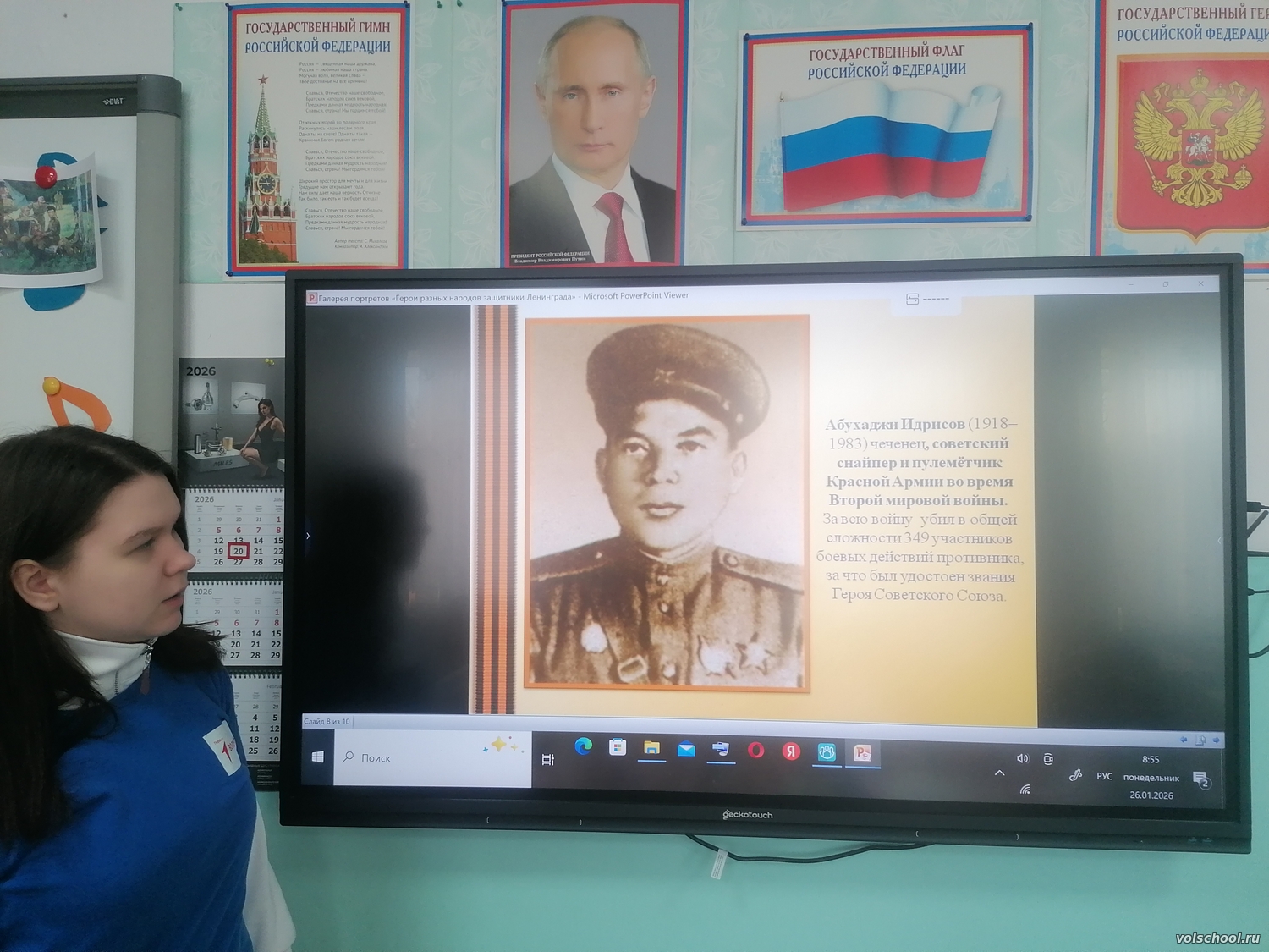 27 января — важная памятная дата в истории нашей страны, символизирующая героизм и стойкость ленинградцев, переживших тяжелое испытание блокадой города в годы Великой Отечественной войны. Этот подвиг стал символом мужества и сплоченности советского народа перед лицом смертельной опасности. Галерея портретов «Герои разных народов: защитники Ленинграда». Этот проект посвящен героям разных национальностей, плечом к плечу защищавшим Ленинград от врага. В Год единства народов России и в преддверии Дня освобождения Ленинграда активисты Движения Первых МБОУ «Волошинская СОШ» вместе с педагогами познакомились с биографиями известных героев, представителями разных народов Советского Союза, которые проявляли мужество и самоотверженность в защите родного города. Каждому ученику было предложено выбрать своего героя и рассказать о нём. Данная акция позволила ребятам лучше познакомиться с историей защитников Ленинграда, подчеркнула ценность дружбы народов и показала важность сохранения исторической памяти для будущего поколений россиян