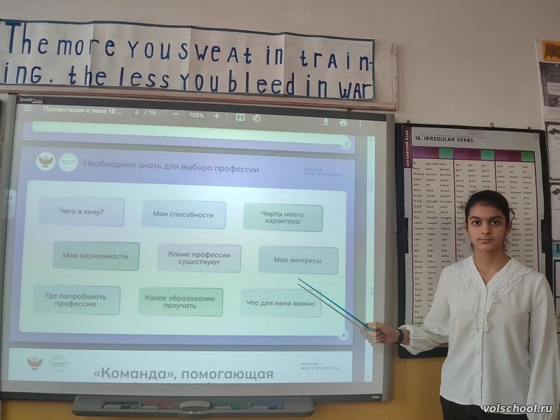 22 января в рамках внеурочной деятельности по курсу «Россия – мои горизонты» учащиеся 5 – 11 классов приняли участие в занятиях «Мои ориентиры», «Моё будущее». Ребята обсудили, как связаны выбор профессии и качества человека, какие выраженные черты личности бывают, как их определить у себя. Они разобрали памятку к тестированию «Мои ориентиры» и посмотрели видеоролики о том, какие личностные качества важны для выбора профессии, как их развивать. Учащиеся познакомились с компонентами готовности к выбору профессии и процессом профессионального выбора