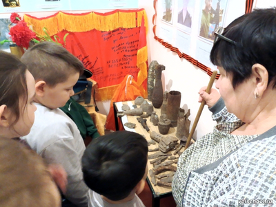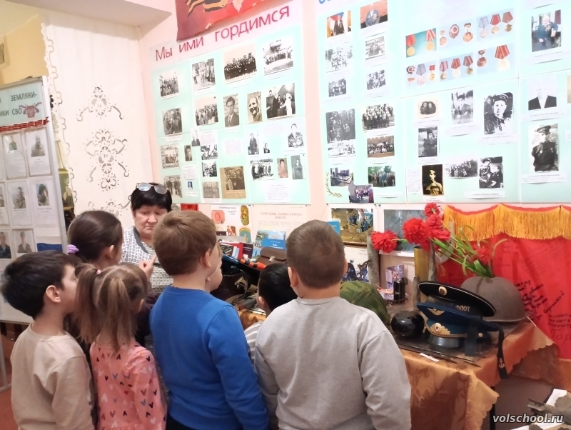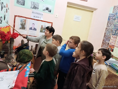 В рамках месячника оборонно-массовой работы для учащихся 5 класса был проведён музейный урок, на котором они слушали рассказ экскурсовода об оккупации Волошинского сельского поселения немецко- фашистскими захватчиками, рассмотрели стенд и экспонаты. Ребята рассказывали о своих прадедушках- ветеранах Великой Отечественной войны