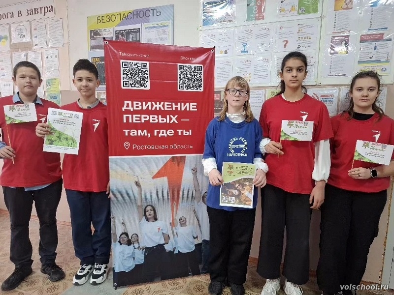 18 февраля активисты Движения Первых МБОУ «Волошинская СОШ», учащиеся 7 класса приняли участие в информационном часе антинаркотической направленности «Противодействие злоупотреблению наркотиками и их незаконный оборот». Социальный педагог С. А. Артунян с учащимися провела беседу о видах ответственности несовершеннолетних за приобретение, хранение, распространение и употребление наркотиков. Ребята приняли активное участие в обсуждении, как и каким образом наркодилеры заманивают подростков и молодежь в противоправную деятельность. В завершении учащиеся пришли к выводу, что будущее нации за здоровым образом жизни. Главный тезис был о необходимости иметь свое критическое мышление и одно уверенное НЕТ избавит тебя от многих бед
