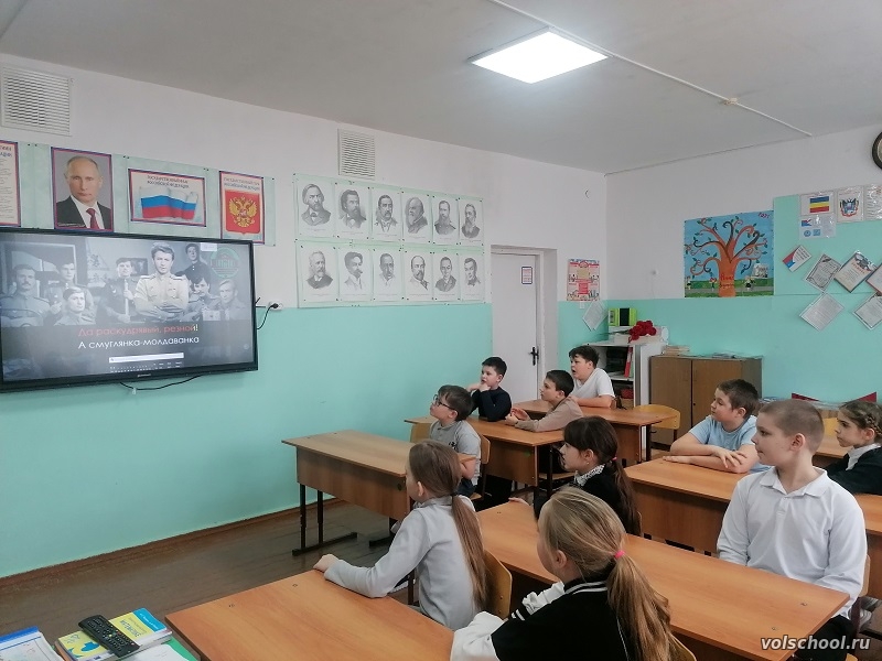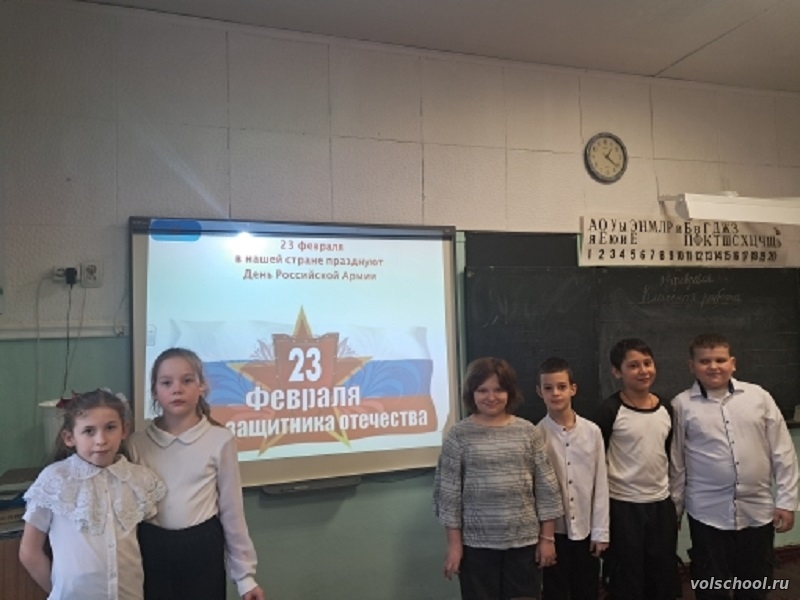 В рамках месячника оборонно-массовой и военно-патриотической работы учащиеся начальной школы на классом часе приняли участие в Уроке мужества «Герои – защитники Родины разных времён и народов», приуроченный к Году единства народов России. Ребята узнали о том, начиная войну против Советского Союза, немецко-фашистское руководство рассчитывало на обострение межнациональных противоречий внутри страны. Однако этого не произошло: дружба народов с честью выдержала испытания войной и ещё больше закалилась. Учащиеся говорили о ярких примерах героизма в Великой отечественной войне и участниках СВО