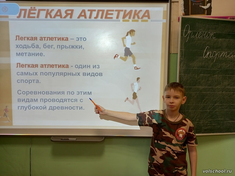 В рамках трека «Орлёнок-Спортсмен» внеурочной деятельности «Орлята России» учащиеся 2 класса знакомились с различными видами спорта. Ученики узнали о летних и зимних видах спорта, а также в рамках трека дети учились правильно распределять время на работу и на отдых, изучали культуру болельщиков. В 3 классе ребята говорили о здоровом образе жизни и его составляющих компонентах: правильное питание, занятие спортом, закаливание и хорошее настроение. Во время занятий, ребята показали дружную работу по всем направлениям