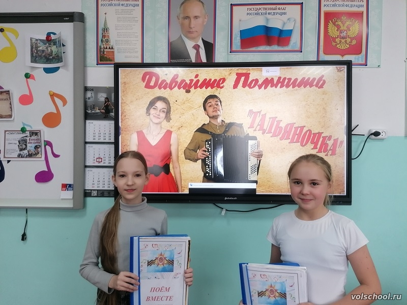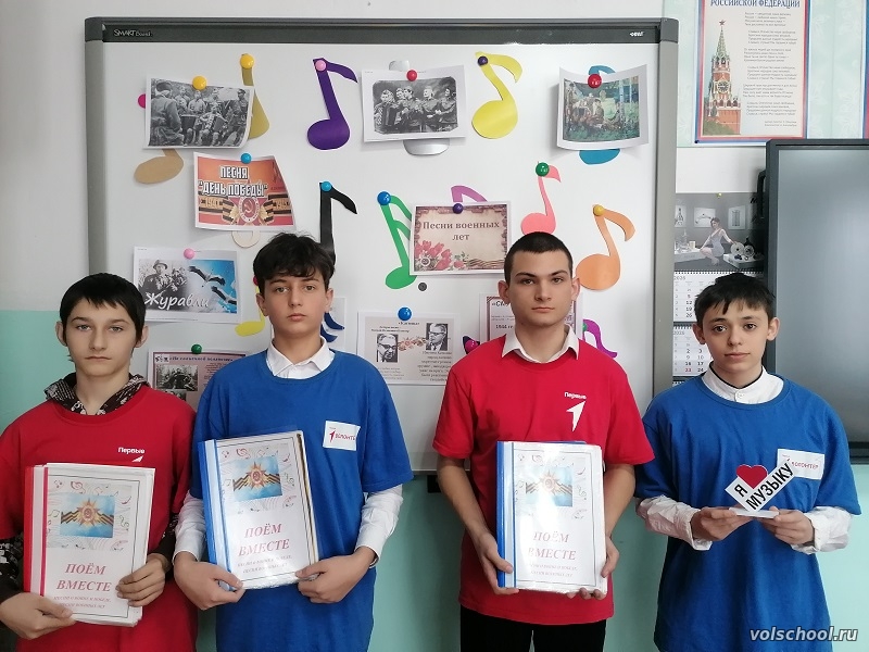 Огромное значение в годы Великой Отечественной войны имела песня. Недаром говорят, что песня – неотъемлемая часть нашей жизни, истории нашей страны. Хорошая песня живет вечно, а в суровые военные годы она была верным спутником бойца. С песней он отдыхал в короткие часы затишья, вспоминал родных и близких. В одном известнейшем фильме о войне есть такие слова: «Кто сказал, что надо бросить песни на войне? После боя сердце просит музыки вдвойне!». В рамках месячника оборонно-массовой и военно- патриотической работы Активисты Движения Первых, учащиеся нашей школы на уроках музыки приняли участие в музыкальном часе «Песни Победы». Ребята слушали и исполняли песни, написанные в годы войны и после неё, а также ознакомились с авторами и историей их создания. Цель занятия - развить интерес к историческому прошлому страны через знакомство с песнями военных лет, сформировать эмоционально-ценностное отношение учащихся к поколению — победителям Великой Отечественной войны