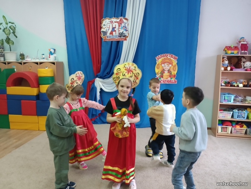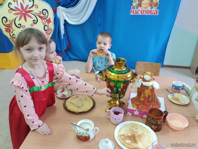 Сегодня дошколята познакомились с русским народным праздником «Широкая Масленица». С детьми проводились беседы о традициях этого праздника, проведены занятия в музее «Русская изба». На занятиях они узнали, как раньше на Руси праздновали Масленицу, что означает и откуда берет начало этот обычай, разучивали русские народные игры, заклички. Дети водили хоровод, танцевали, играли в русские народные игры: «Карусель», «Передай куклу Маслёнку», «Перенеси блины». И, конечно же, угощались блинами со сгущенкой и ароматным чаем с малиной. Огромное спасибо мамам и бабушкам за вкусные блинчики. Праздник получился тёплым и весёлым, теперь весна точно наступит!
