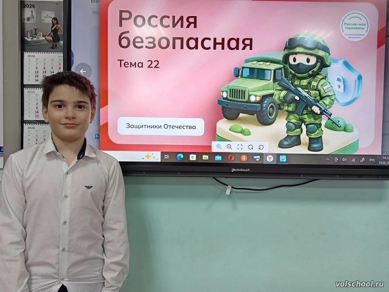 19 февраля в рамках внеурочной деятельности по курсу «Россия – мои горизонты» учащиеся 5 – 11 классов приняли участие в тематических занятиях «Россия безопасная. Защитники Отечества». В преддверии Дня защитника Отечества мероприятия были организованы, чтобы показать ребятам, что безопасность страны - это не абстрактное понятие, а ежедневный труд тысяч профессионалов. Ученики посмотрели познавательные видеоролики об отраслях, профессиях и образовательных траекториях, связанных с обеспечением безопасности страны и граждан. Они приняли участие в интерактивной игре «Верно — не верно», где отрабатывали критическое мышление, умение распознавать факты и мифы о профессиях безопасности