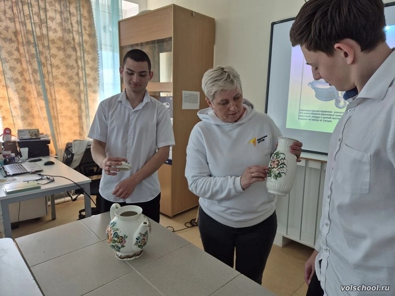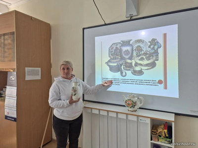 Семикаракорская керамика относится к народным художественным промыслам России. В окрестностях города Семикаракорск, расположенном на Дону, нашли около трёх десятков древних поселений, пользовавшихся керамикой местного происхождения, созданного из здешних же суглинков и различных сортов глины. Изделия, по качеству близкие к современной керамике, начали производить во второй половине 19-го столетия. Об этом и многом другом сегодня узнали ученики восьмого класса от советника директора по воспитанию Евгении Горашко. Фабрика «Семикаракорская керамика» единственная в Ростовской области, входит в Федеральный перечень предприятий народных художественных промыслов России. Она выпускает различные виды посуды, элементы интерьера, сувениры и куклы. Вплоть до сегодняшнего дня часть изделий оформляются вручную. Изделия участвуют в российских и международных выставках. О семикаракорском фаянсе заговорили даже спортсмены. В 2014 году были выпущены статуэтки в виде талисманов Олимпийских игр в Сочи. Таким образом, он стал не только символом Донского края, но и важной частью мировой культуры. Произведения семикаракорской керамики признаны не только в России, но и за рубежом. Лучшие изделия не раз за историю завода выставлялись на внутренних и международных выставках, где были отмечены дипломами и медалями. Учащиеся рассмотрели некоторые экземпляры и оценили по достоинству всю красоту этой посуды!