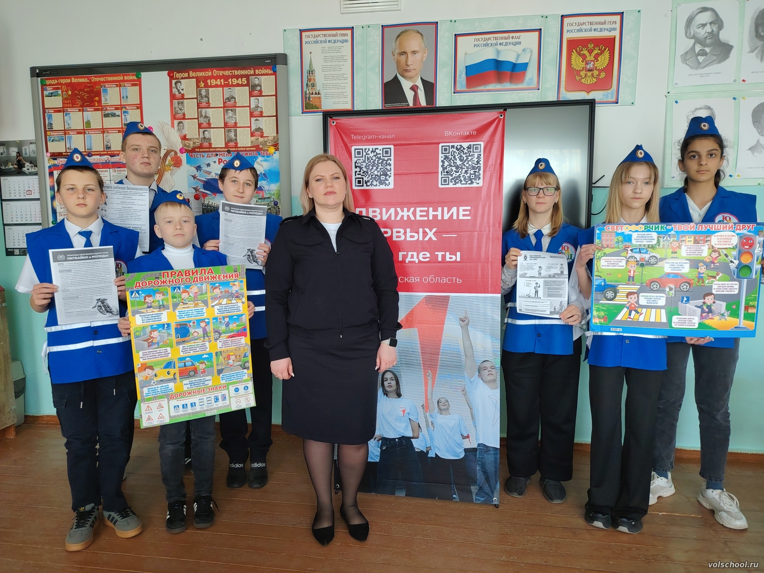 23 апреля Активистами Движения Первых первичного отделения МБОУ «Волошинская СОШ» был проведен урок мужества для учащихся 6-7 классов посвященный лауреатам Всероссийской общественно-государственной инициативы «ГОРЯЧЕЕ СЕРДЦЕ». Ребята рассказали кто они юные герои, какими качествами обладают и какие героические поступки совершили. Рассказали о подвигах некоторых детей, представленных в книге почета «Горячее сердце»: Бухарова Александра - несмотря на полученное ранение от БПЛА, помогла маме спасти жильё от пожара и сильного разрушения; Руссов Савелий - спас трехлетнего мальчика который подавился шариком. Также некоторые ученики рассказали о своих подвигах, о том какие решения они принимали в критических ситуациях, какие качества им помогли и что заставило их помочь другим