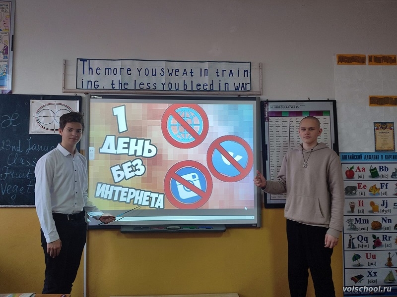 24 января занятие по внеурочной деятельности «Медиаграмотность» в 9 классе было посвящено Международному дню без Интернета. Он отмечается мировым интернет-сообществом ежегодно в последнее воскресенье января - 26 января. Свою историю этот праздник ведёт с начала 2000-х годов. Главная цель данного праздника – полностью отвлечь людей от компьютеров и Глобальной сети хотя бы на один день сосредоточиться на реальном мире, а не на виртуальном, чтобы прожить этот день исключительно в «реальном» мире, общаться с другими людьми исключительно «вживую» или посвятить его своему любимому хобби (конечно же, не связанному с интернетом), привлечь внимание людей к деятельности, не связанной с гаджетами и социальными сетями. Появлению столь необычного праздника способствовала проблема реального общения между людьми. Как ни странно, первыми организаторами этого мероприятия стали активные Интернет-пользователи, которых в последствии поддержали люди во всем мире. Учащиеся поделились своими предпочтениями, хобби и обсудили, чем они займутся в этот день