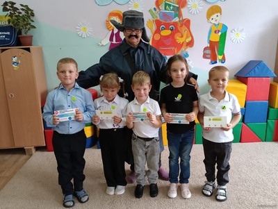 С большим интересом дошколята встретили почтальона Печкина, который не знал правила дорожного движения. Дети наперебой отвечали на его вопросы и играли в игры «Чтобы не сбиться вам с пути, сигналы светофор повтори!», « Где мы были, мы не скажем, на чем ехали, покажем!» Печкин научил детей веселому танцу «Колесики», подарил светоотражающие значки и стикеры. Не остались без подарков и родители, для них ребята нарисовали памятки, посвященные безопасности дорожного движения