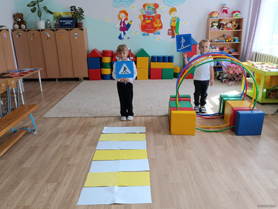 Дети отгадывали загадки, разыгрывали различные ситуации на дорогах, играли в подвижные игры: «Пешеходный переход», «Светофорчики», «Слушай - запоминай», «Водители, на старт!», благодаря чему дети закрепляли знания о дорожных знаках, умение ориентироваться на улице.