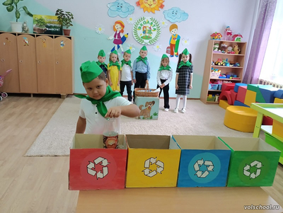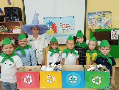 26 сентября эколята – дошколята провели экологический урок по раздельному накоплению твёрдых коммунальных отходов. В гости к детям пришёл Незнайка. Он хотел вынести мусор, но не смог этого сделать, потому что вместо привычного одного контейнера стояло целых четыре. Растерявшись, Незнайка не знал, в какой же контейнер нужно положить мусор. Он решил обратиться за помощью к эколятам. Дошкольники рассказали и показали Незнайке, зачем сортировать мусор. Разделение мусора делается в целях избегания смешивания разных типов мусора и загрязнения окружающей среды. Данный процесс позволяет подарить отходам «вторую жизнь». Контейнеры различаются по цвету, причем, цвет может быть разным: голубым, красным, желтым, зеленым, серым. Что написано на контейнерах, то и должно находиться внутри. Довольный Незнайка поблагодарил ребят и отправился в свой Цветочный город, чтобы научить жителей сортировке бытовых отходов. Никогда не забывайте, природа - это наш общий дом, а в доме всегда должно быть чисто!