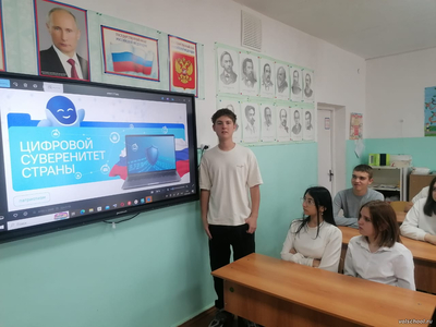 В рамках внеурочной деятельности в 1 – 11 классах на занятиях по курсу «Разговоры о важном» была рассмотрена тема «Цифровой суверенитет страны». Ребята обсудили, насколько важно для государства создать условия, обеспечивающие безопасность и надёжность цифровых инструментов, которыми пользуются миллионы людей ежедневно. Подчеркнули, что Россия создаёт собственные национальные технологии, продолжая традиции предков, которые строили космические корабли и отправляли первых людей в космос.