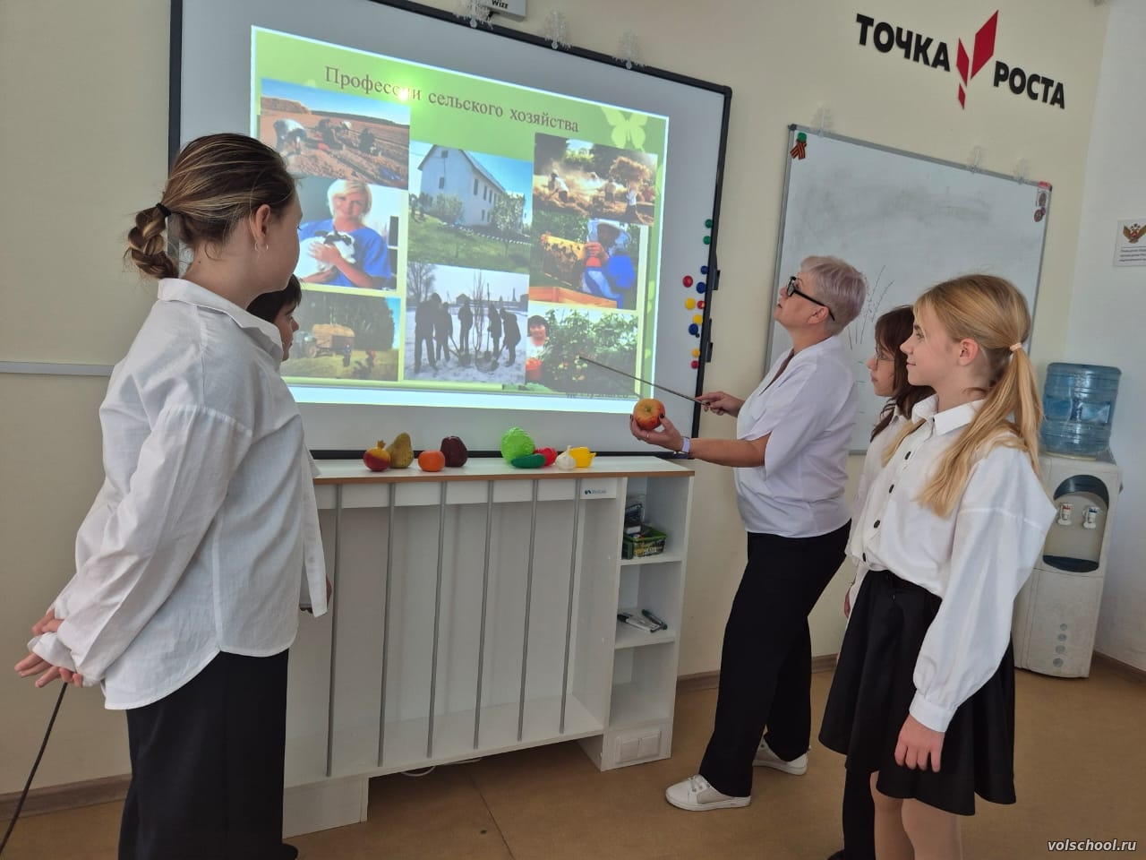 День работника сельского хозяйства — официальный профессиональный праздник в России. В этот день принято поздравлять всех причастных к сфере АПК: фермеров, механизаторов, агроинженеров, профильных экологов, биотехнологов, селекционеров и других. В Волошинской школе советник директора по воспитанию Евгения Горашко провела с учащимися 5 класса познавательный урок на тему «Труд жителей села». Ребята узнали профессии людей, работающих в сельском хозяйстве, за кем ухаживают, что выращивают, благодаря чьим усилиям, мы всегда обеспечены продуктами питания и всем необходимым