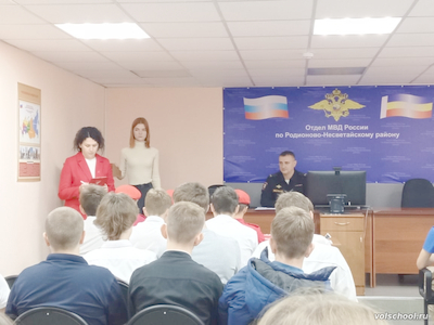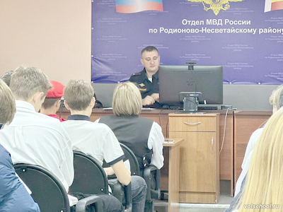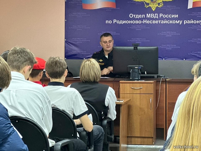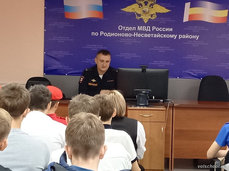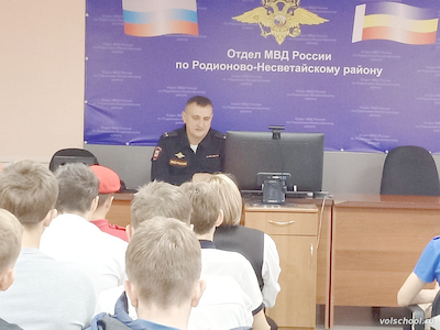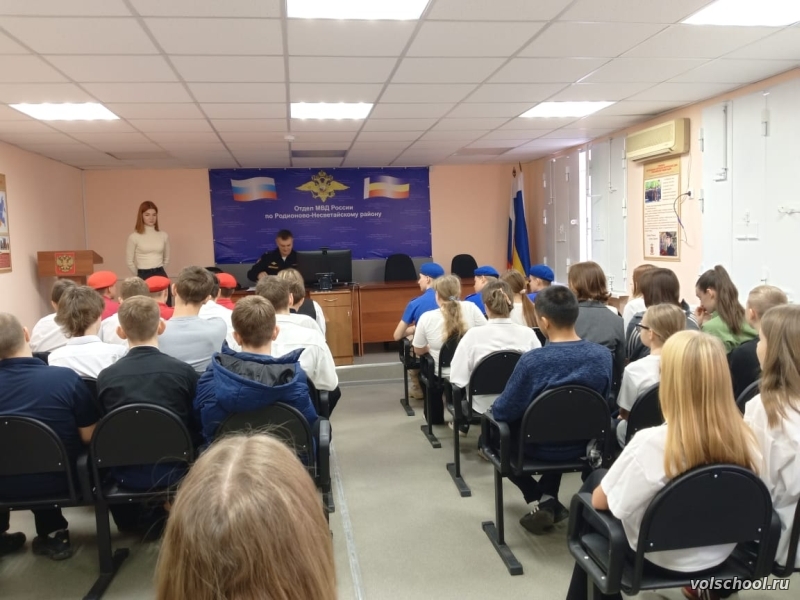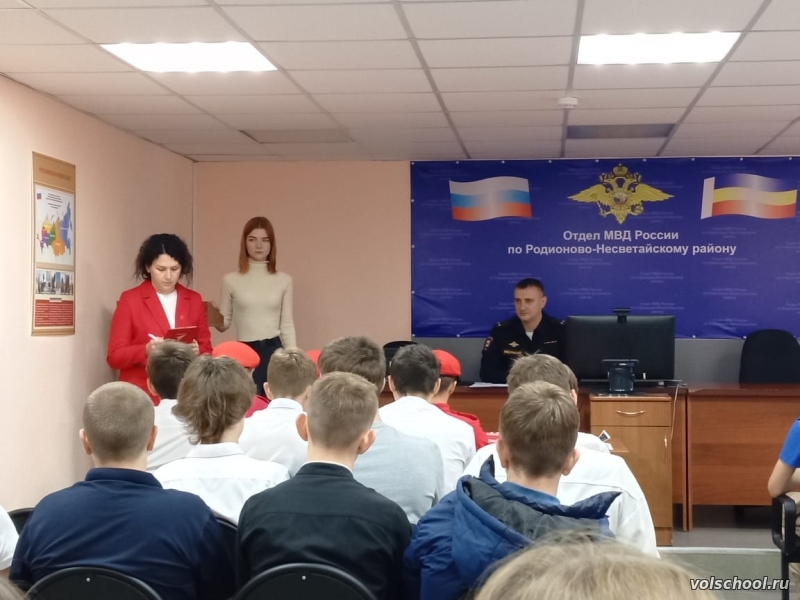 20 октября активисты Движения Первых МБОУ «Волошинская СОШ» в составе делегации активистов Движения Первых нашего района приняли участие в «Профэкспедиции» в ОМВД России по Родионово-Несветайскому району и «Классной встрече» с заместителем начальника полиции ОМВД России по Родионово-Несветайскому району подполковником В. С. Сухоносовым. Для участников была организована экскурсия по отделению с целью ознакомления с работой сотрудников полиции, а также с ребятами была проведена профориентационная беседа о том, какими деловыми качествами должен обладать сотрудник полиции, о правилах и условиях поступления в образовательные организации МВД России