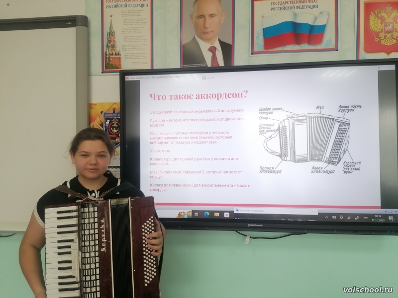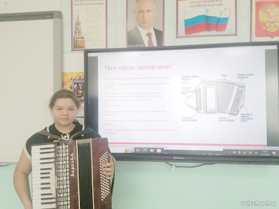 В рамках Международного дня музыки учащиеся 5 класса подготовили индивидуальные проекты, в которых рассказывали о танцах, песнях, инструментах народов мира, а Золотарь Валентина исполнила на аккордеоне любимое произведение. Также советник директора по воспитанию нашей школы Горашко Е. В. провела для учащихся 5 класса музыкальную викторину «Угадай мелодию»