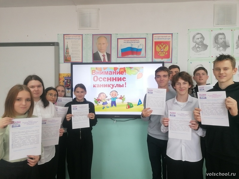 Каникулы — время отдыха, но не стоит забывать о безопасности. Каждый ученик, независимо от возраста и планов, должен знать несколько важных правил. Поэтому классные руководители в последний день занятий напоминают о них. 24 октября в школе прошли информационные часы для всех классов. Тема — «Безопасность во время осенних каникул». Ученикам посоветовали больше времени проводить на свежем воздухе. Особое внимание уделили правилам безопасности дома, на дорогах, при пожаре, в интернете, а также профилактике экстремизма, терроризма, гриппа и ОРВИ. Желаем всем приятного и безопасного отдыха, а затем с новыми силами начать новую четверть