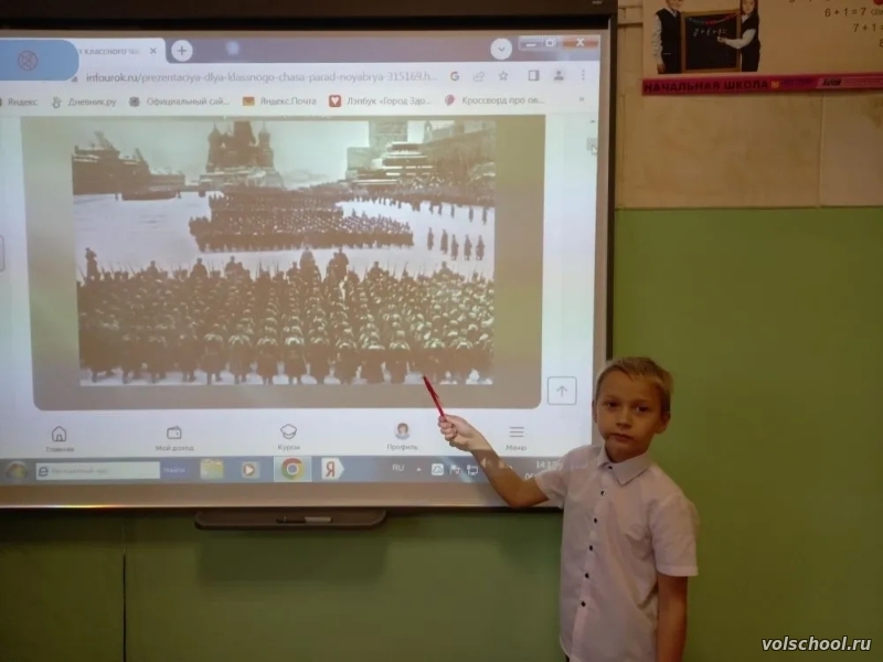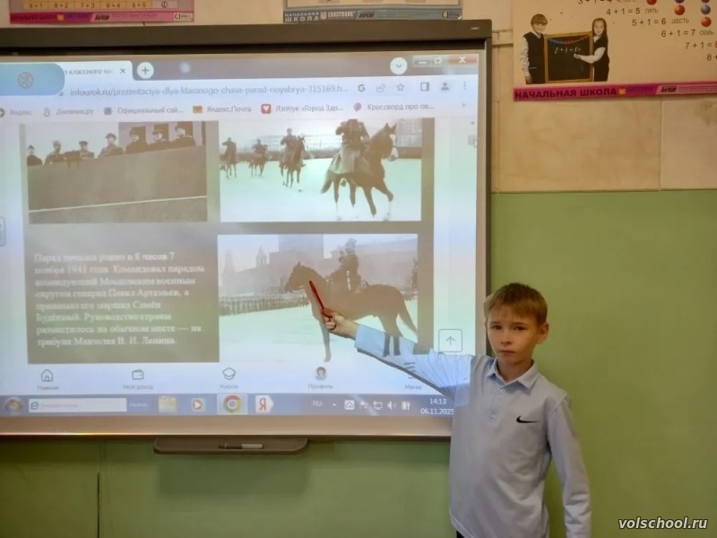 6 - 7 октября на информационном часе в нашей школе учащиеся посмотрели видеоролик о Параде 7 ноября 1941 года в Москве. Эта дата — важная веха в истории Великой Отечественной войны. В условиях, когда фронт был всего в нескольких десятках километров от Москвы, на Красной площади прошёл легендарный парад. Подготовка к нему велась в обстановке полной секретности. Участники до последнего момента не знали, что это не обычные учения. Погода тоже сыграла свою роль: снежная буря затрудняла работу, но помогла скрыть мероприятие от вражеской авиации. Особенностью парада стало выступление Сталина. Он впервые обратился к участникам и зрителям с трибуны мавзолея, призвав бойцов и командиров Красной армии бороться за свободу и независимость Родины. Большинство подразделений, принявших участие в параде, сразу же отправились на фронт. За рубежом это событие восприняли как яркий пример мужества и стойкости. Британская пресса назвала парад «величественным проявлением отваги». Исторический парад стал символом несгибаемой воли советского народа, укрепил моральный дух армии, вдохновил страну на борьбу и способствовал объединению международных сил против фашизма