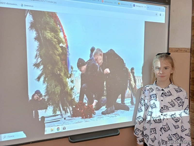 Социальный педагог С. А. Артунян организовала для учеников 5–11 классов информационный час, посвящённый этому дню. В этот день мы вспоминаем тех, кто отдал жизнь, защищая мир и спокойствие граждан. Их подвиг навсегда останется в наших сердцах. Детям показали клип о герое России Магомеде Нурбагандове.