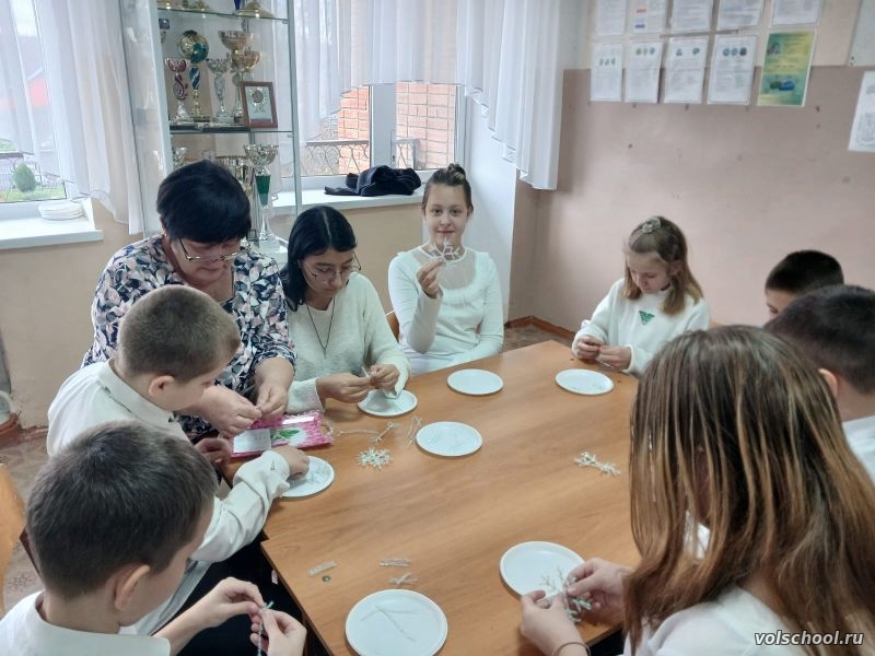 Сегодня в честь дня рождения школы на переменах звучала праздничная музыка. Отряд ЮИД «Инспектора» и активисты Движения Первых МБОУ «Волошинская СОШ» вместе с учениками школы приняли участие в мастер-классах по созданию новогодних снежинок и открыток для солдат СВО. Все желающие, включая учащихся и взрослых, могли написать поздравления на специально подготовленных праздничных открытках. В актовом зале ученики наслаждались просмотром любимых мультфильмов. Ребята танцевали и водили хоровод. С днём рождения, любимая школа!