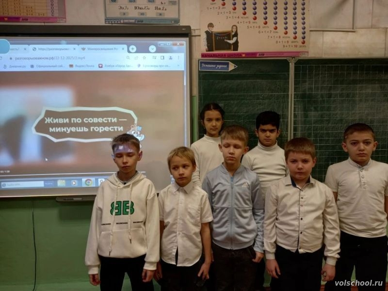 22 декабря на уроках «Разговоры о важном» ученики 1–11 классов обсудили тему «Что говорит совесть?». Классные руководители рассказали о совести, моральной ответственности за свои действия перед собой, другими людьми и обществом. Они также обсудили, как важно стремиться к нравственному совершенствованию и социально одобряемому поведению. Учащиеся посмотрели ролик с участием Шалвы Амонашвили. Когда каждый человек стремится поступать по совести и брать на себя ответственность за свои поступки, в обществе царит взаимоуважение, поддержка и справедливость
