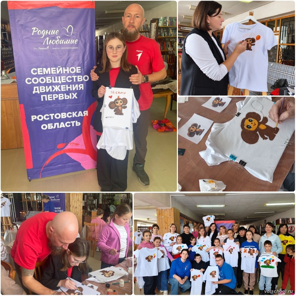 24 января на базе районной библиотеки в рамках Конкурса первичных отделений состоялся семейный творческий фестиваль «Семейный альбом творчества». Открылся фестиваль выставкой семейных творческих работ. Настоящие шедевры, созданные вместе — родителями и детьми, бабушками и внуками. Гости могли увидеть живописные рисунки, трогательные аппликации, сказочные новогодние игрушки и многое другое — каждая работа была наполнена теплотой семейной истории и индивидуальностью автора. Встречи с мастерами своего дела позволили участникам научиться новым техникам и приемам, а также вдохновили на создание новых творческих проектов. В продолжение фестиваля активисты Движения Первых вместе с родителями приняли участие в мастер-классе по росписи футболки. Всеми полюбившегося героя мультфильма - Чебурашку, ребята рисовали очень старательно. Фестиваль завершился на радостной ноте, оставив яркие воспоминания и вдохновение у каждого участника. В течение всего мероприятия участники имели уникальную возможность погрузиться в творчество семьёй, обменяться опытом и создать настоящие семейные ценности