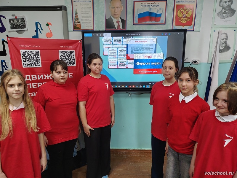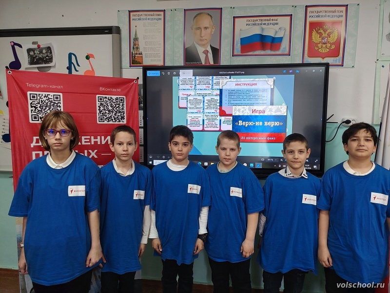 Активисты Движения Первых первичного отделения МБОУ «Волошинская СОШ» приняли участие во Всероссийской акции «Укрепляй здоровье» посвященной Всемирному дню здоровья. В рамках этой акции была проведена интеллектуальная игра «Верю – не верю», в ходе которой участники разделились на две команды: «Помидоры» и «Дикие бананы». Ребята с интересом играли и были очень удивлены, узнав некоторые факты. Победила команда «Дикие бананы»