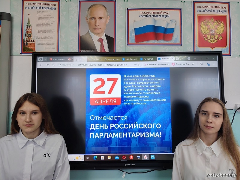 Парламентаризм — это важная часть демократического строя, при котором значительная часть власти принадлежит представительному органу — парламенту. В России традиции народного самоуправления уходят корнями в глубокую древность, а современная парламентская система продолжает развиваться и сегодня. 27 апреля в нашей школе для учащихся 7-11 прошли познавательные классные часы, приуроченные ко Дню российского парламентаризма — профессиональному празднику, установленному в честь начала работы первой Государственной Думы Российской империи в 1906 году. Ребята познакомились с историей становления парламентаризма в нашей стране, узнали, как проходят выборы, какие полномочия имеет Государственная Дума, и почему участие в выборах — это не только право, но и гражданская обязанность. Мероприятие способствовало формированию у учащихся гражданской ответственности, правовой грамотности и уважения к истории государственного устройства России