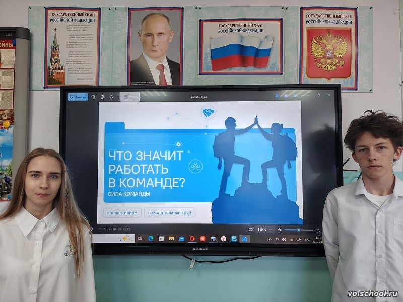 Утро понедельника 20 апреля 2026 года в нашей школе традиционно началось с торжественной линейки, церемонии выноса флага и исполнения гимна Российской Федерации. Также на линейке были подведены итоги прошлой недели - учащиеся получили заслуженные грамоты за участие в конкурсах. Затем в рамках проекта «Разговоры о важном» состоялись занятия «Что значит работать в команде? Сила команды». Занятие было приурочено к Празднику Весны и Труда. Почему люди объединяются для достижения общей цели, и как взаимодействие помогает справляться с задачами, которые трудно решить в одиночку? Потому что очень важно быть ответственным, уметь доверять и уметь договариваться. Обсудили значение совместной работы, распределение ролей и ответственности в коллективе. Учащиеся посмотрели короткий анимационный ролик о работе команды, после чего они обсуждали, как герои сюжета достигли результата совместными усилиями. Также проводились простые интерактивные задания, например, командные игры на распределение ролей и совместное решение задач. В заключение занятия подвели итог, что успех команды зависит не только от индивидуальных способностей, но и от умения договариваться, слушать друг друга и брать ответственность за общий результат